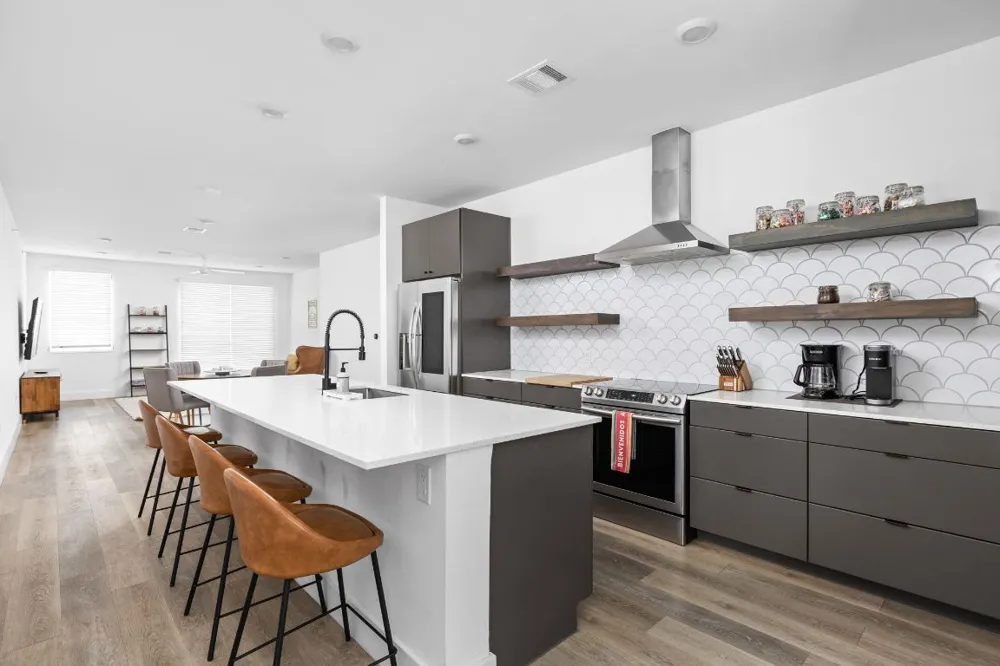 Welcome to Austin's vibrant East side with incredible STR history! This light-filled, design-forward 2-bedroom, 2-bath condo is situated in the heart of the East Side and is sure to impress. The stylish condo unit features gleaming wood floors, tall ceilings, and a thoughtfully designed open layout. The kitchen showcases stunning tile backsplash, floating wood shelving, quartz countertops, and an oversized island that seamlessly connects to the spacious living and dining areas. A primary suite that offers a walk-in shower, dual vanities, chic tile details, and abundant natural light awaits. What truly sets this home apart is its unbeatable walkability, just steps to some of Austin’s best coffee shops, restaurants, breweries, and nightlife. With close proximity to the airport and downtown, this condo offers convenience and connectivity in one of the city's most exciting neighborhoods.